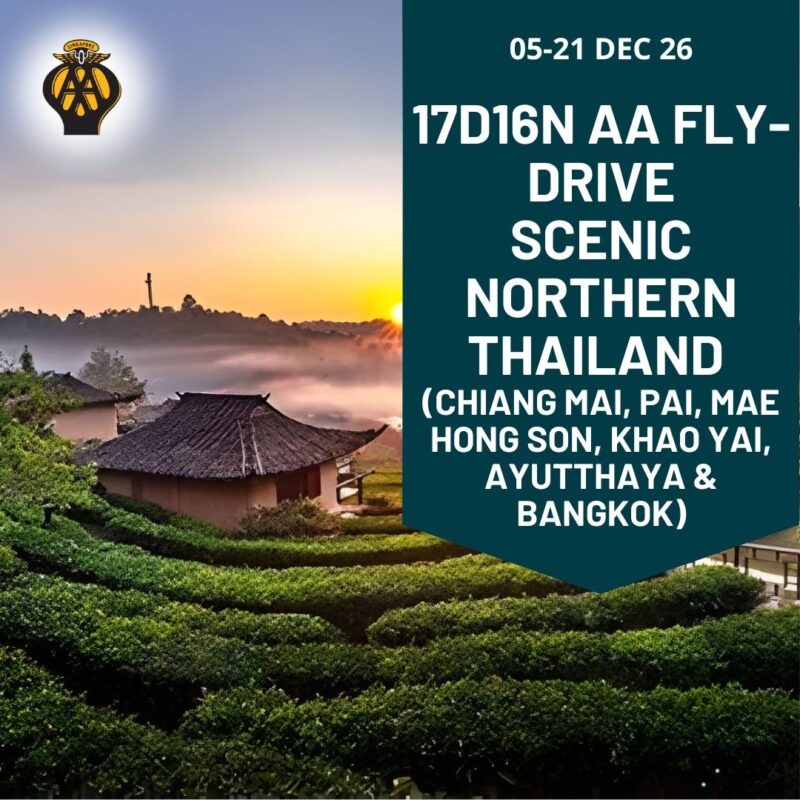This browser does not support PDF! DOWNLOAD ITINERARY Registration closes 19 December 2025 Minimum Group Size 15 Enquiries For enquiries, please email to AA Events & Activities department at [email protected] with subject "16D15N 16D15N AA Fly Drive to Northern Thailand" 6333 8811 (ext 140) ItineraryPricesPackageCancellationTerms & ConditionsItinerary Day 01 6 Jan 2026 (Tue) SINGAPORE - [...]